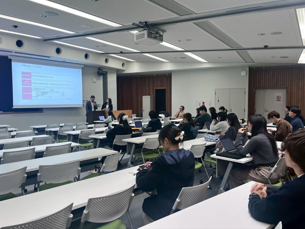 2025年12月3日、大阪大学にて、住友ゴム工業株式会社(DUNLOP)による特別授業を実施しました。講師として、同社サステナビリティ経営推進本部の宮城ゆき乃さん、島田菜実さん、大塚智美さんの3名にお越しいただき、学生が架空企業の若手社員としてDE&Iの課題に向き合う体験型学習を実施しました。